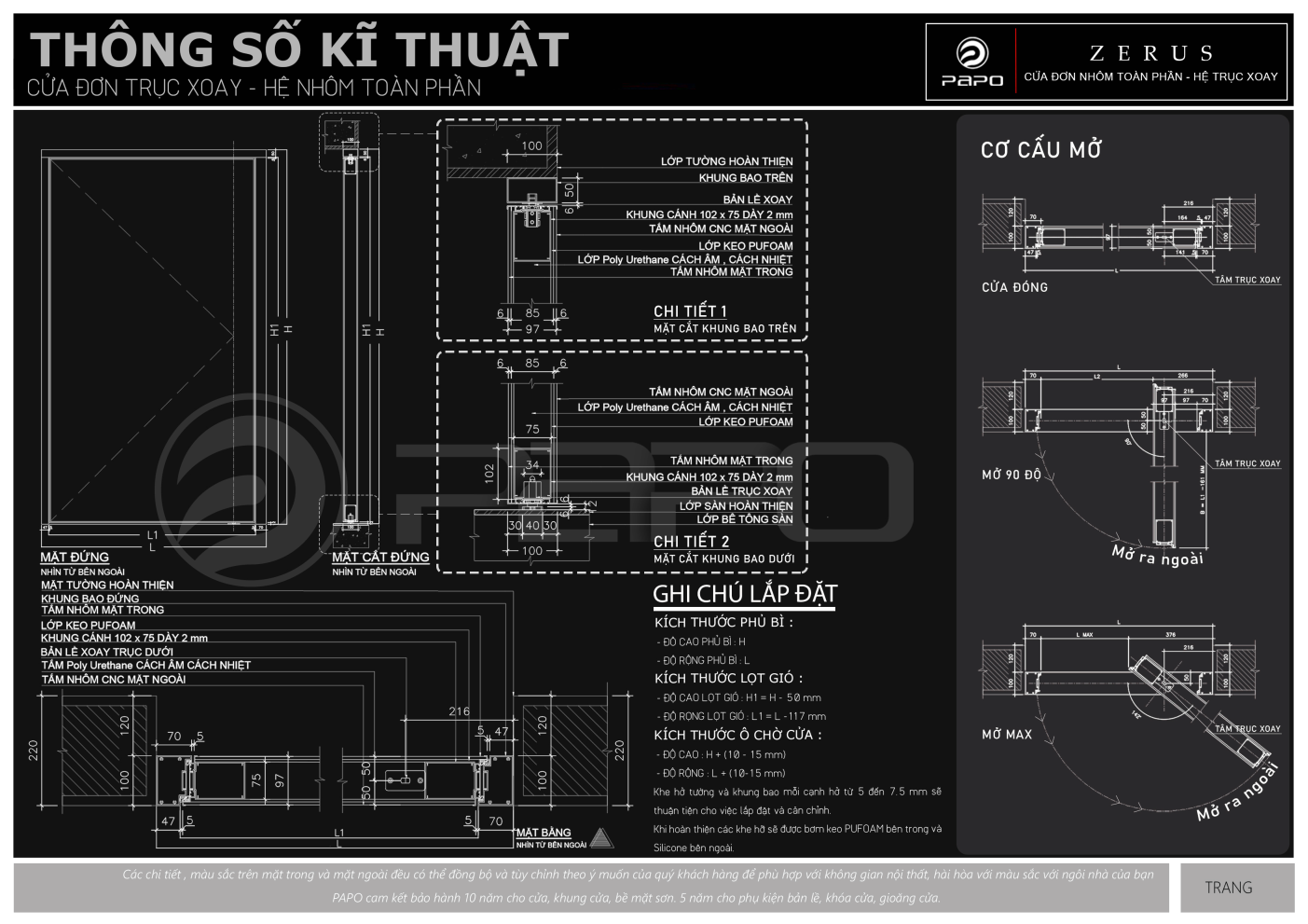 CỬA NHÔM TẤM ĐÚC HỆ LỆCH TRỤC - CÁNH ĐƠN KÍCH THƯỚC SIÊU KHỦNG